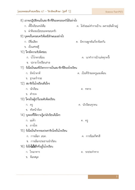 - แบบทดสอบ วิทยาศาสตร์ ป.1