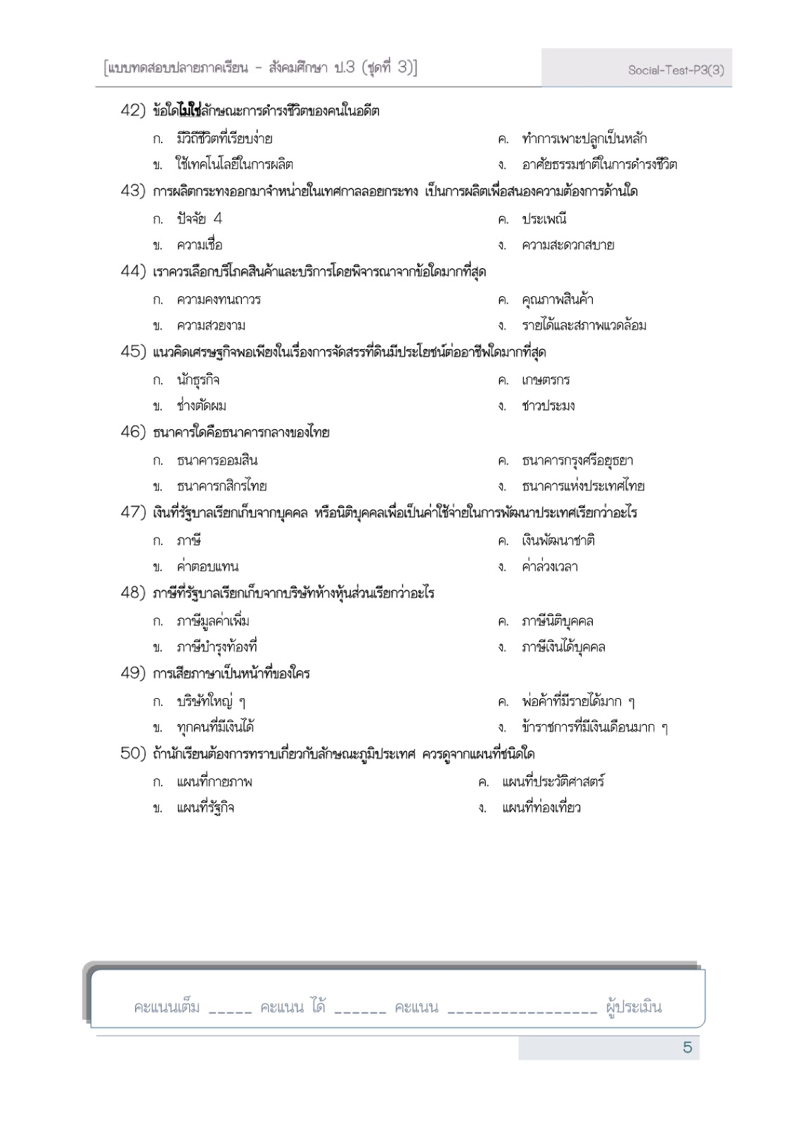 แบบทดสอบปลายภาคเรียน - วิชาสังคมศึกษา ป.3 (ชุดที่ 3) - แบบทดสอบปลายภาคเรียนที่ 2
