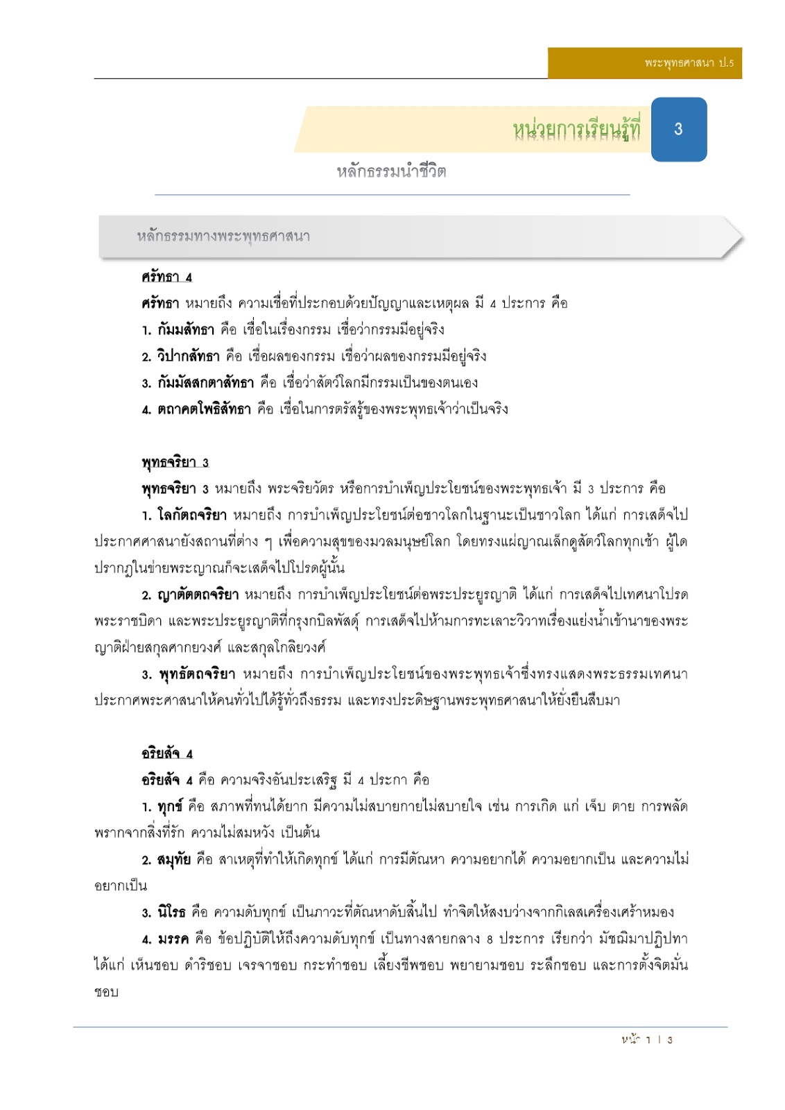 สรุปเข้มเตรียมสอบ ป.5 (วิชาพระพุทธศาสนา) - หน่วยการเรียนรู้ที่ 3 หลักธรรมนำชีวิต